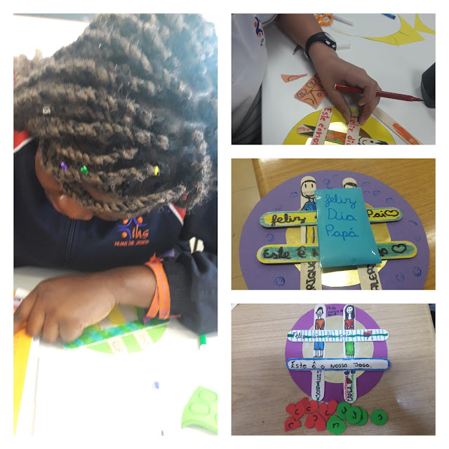 Foi com muita ternura e criatividade que os alunos fizeram o seu presente para o papá: um jogo do galo personalizado!